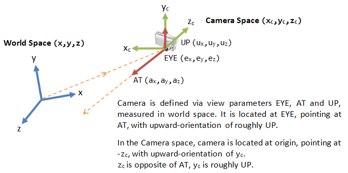 The next level of complexity is when we introduce a camera or viewport into the scene. Like geometry, a camera is just another object that is present in the scene, complete with it’s own space. However, instead of being a local space where vertices are kept in relation to each other, the camera space dictates what is and isn’t in view. If an object isn’t within the camera’s view, than it isn’t apart of the camera space. This is controlled by setting a camera’s resolution and field of view alongside where a rotation and translation value to determine where it is positioned.