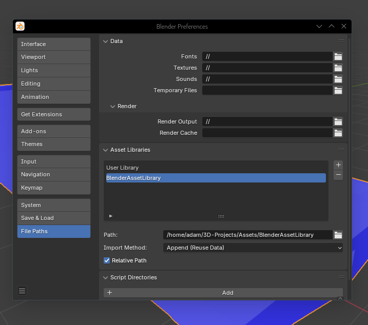However, just because we’ve told Blender that this object is an asset doesn’t mean that it’s now available to us in every project forever. The next step is setting up the folder / directory where Blender will know that all of the Assets are stored.